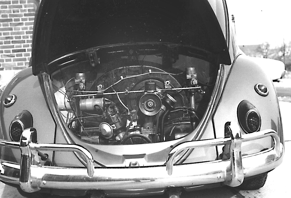 Porsche Felgen: 165 x 15 Dunlop SP, verstellbare Koni - Daempfer, negativer Sturz 1. Stufe: 34 PS Motor aus neuem VW-Typ 2. Stufe: Motor mit einem Vergaser pro Zylinder (Eigenbau) 3. Stufe: Judson Kompressor (fuehrte zum Bruch der Kurbelwelle, Motor lief aber noch ca. 140 km. |